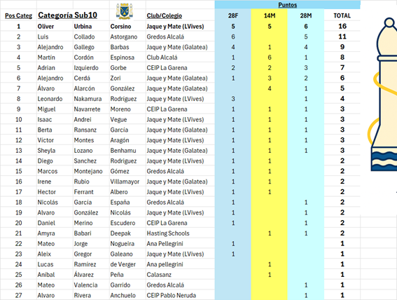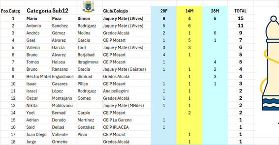 Ajedrez rápido por equipos - Liga por equipos - Sub16